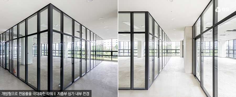 ● 1~2층 상가: 타워Ⅰ은 카페, 편의점, 음식점 등이 이미 입점해 활기를 띠고 있고, 타워Ⅱ는 오픈형 상업 공간으로 다양한 브랜드 매장이 들어올 수 있도록 설계됐습니다.