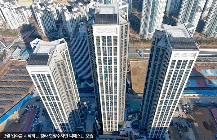 청라 국제금융단지에는 업무 기능을 뒷받침할 주거 인프라도 함께 조성되고 있습니다. 그중에서도 오는 3월 입주를 시작하는 ‘청라 한양수자인 디에스틴’은 주목할 만한 단지입니다. 해당 단지는 지하 4층~지상 최고 47층, 3개 동, 총 702실 규모, 전용면적 84㎡ 단일 면적으로 구성된 주거형 오피스텔입니다.