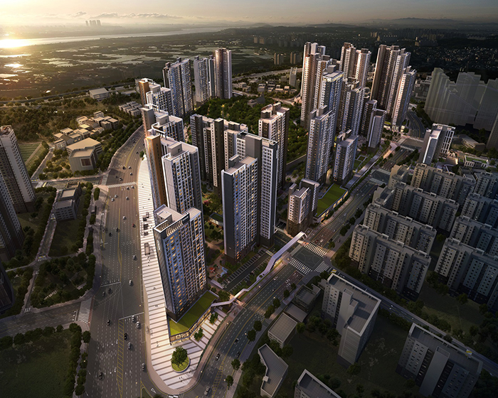 < 김포 북변4구역 ‘한강 수자인 오브센트’ 반조감도 >