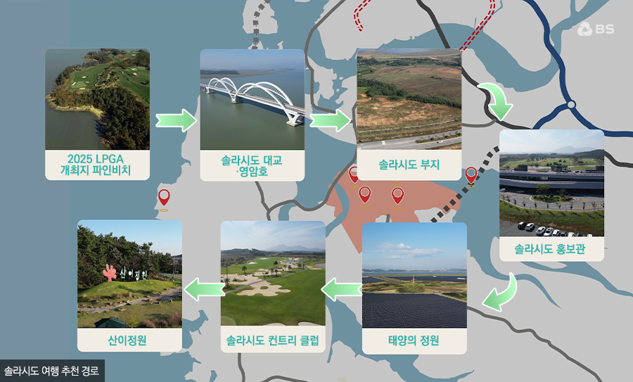 지금까지 해남의 바다와 정원을 거닐며, 솔라시도가 그리는 '에너지 미래도시'를 엿보았습니다. 재생에너지를 통한 지속 가능 에너지 생태계. AI가 스스로 학습하고 도시를 움직이는, 대규모 AI인프라와 친환경 에너지가 결합된 도시. 기존 자연환경을 활용한 생태네트워크를 구축하고 자연과 인간이 공존하는 정원 속 도시. - 바로 BS그룹이 그리고 있는 지속 가능한 에너지 미래도시, 솔라시도입니다.