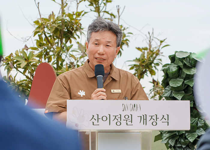 산이정원 개장식에서 기념사를 하고 있는 이병철 아영 대표이사