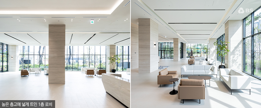 ● 1층 로비: 고급스럽고 탁 트인 공간이 방문객을 맞이합니다.