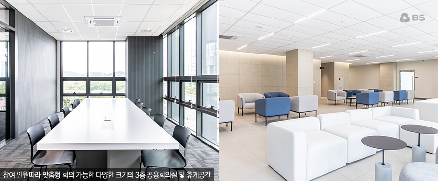 ● 3층 공용 회의실: 기업 간 협업과 세미나, 컨퍼런스를 진행할 수 있는 중심 공간입니다. 소규모부터 대규모 프로젝트 연합 회의도 가능한 크고 작은 회의실 20호실이 마련되어 있습니다.