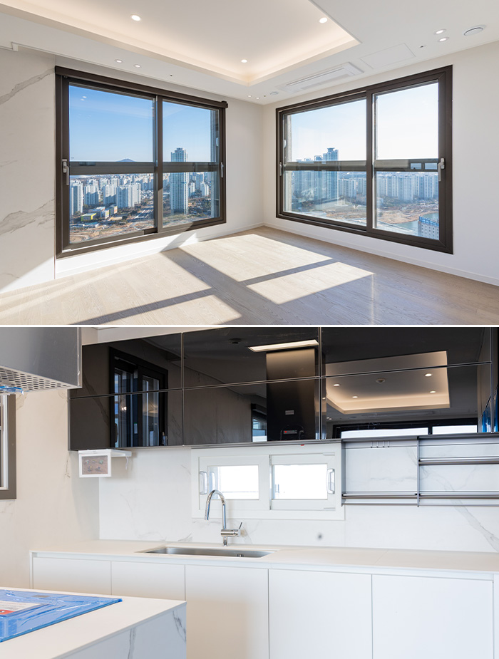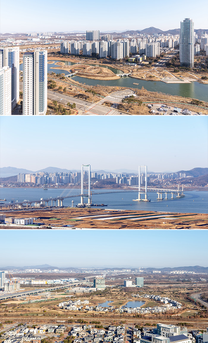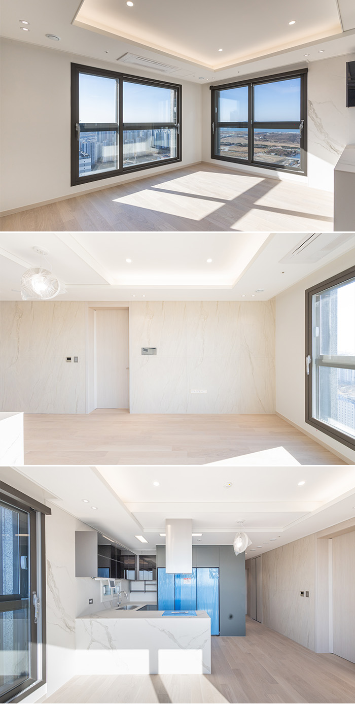 청라 한양수자인 디에스틴은 전 호실 남동·남서향 배치로 채광과 환기 및 호수공원 조망을 극대화 했습니다. 전용 84㎡의 세 개 타입을 모두 방문해 보았는데요. 남북으로 길게 자리잡은 청라호수공원은 물론, 북쪽 골프클럽, 서쪽 노을공원과 서해, 제3연륙교 등을 조망할 수 있습니다(* 배치에 따라 다를 수 있음).