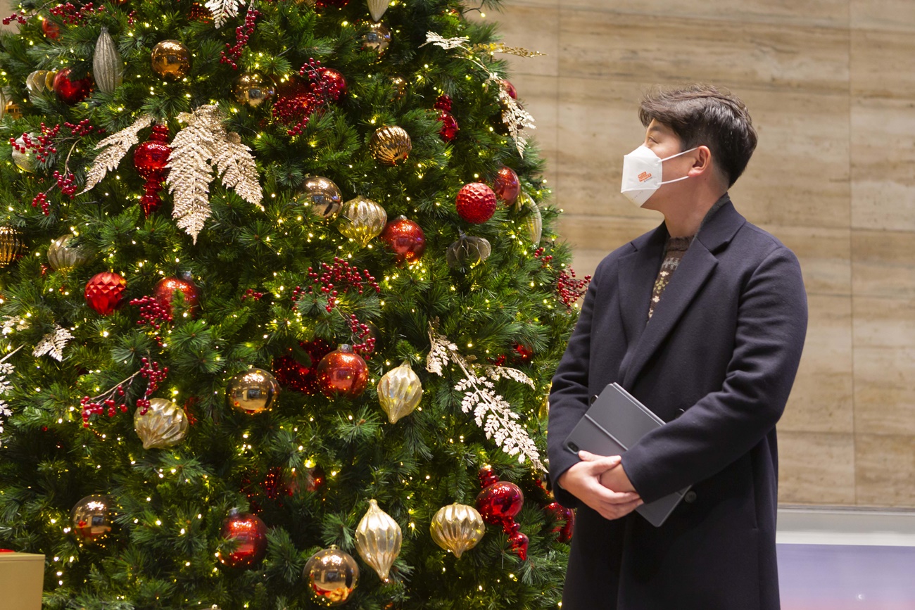 Q. 정말 좋은 취지의 행사네요! 현재 한양타워 로비는 아주 멋진 트리와 함께 미셸 들라크루아의 작품이 전시되어 있어서 연말 분위기가 가득한데요, 이번 연말 기부 행사 준비에 많은 공을 들이셨다는 게 느껴집니다.